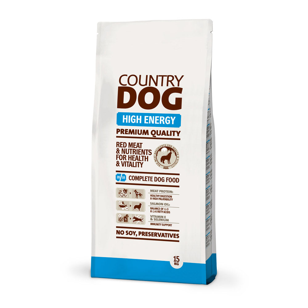 Country Dog High Energy este o hrană completă 100% echilibrată, potrivită pentru câinii adulți cu activitate mai mare.